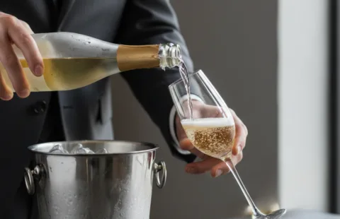 Opening a bottle of champagne is 100% safe but always remember that the contents are under extreme pressure. If you’ve never opened a bottle of champagne with a saber, it is wise to practice outside with no one nearby. Wear goggles, chill the champagne, use the bottle seam to your advantage, and swipe the champagne saber away from you. If it doesn’t open, try again with a bit more speed and pressure and double check that your bottle is chilled and you are aligned with the seam.