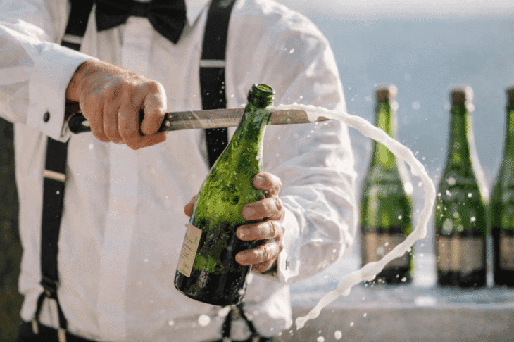 That combination of control and cleanliness is what separates polished sabrage from chaotic attempts.